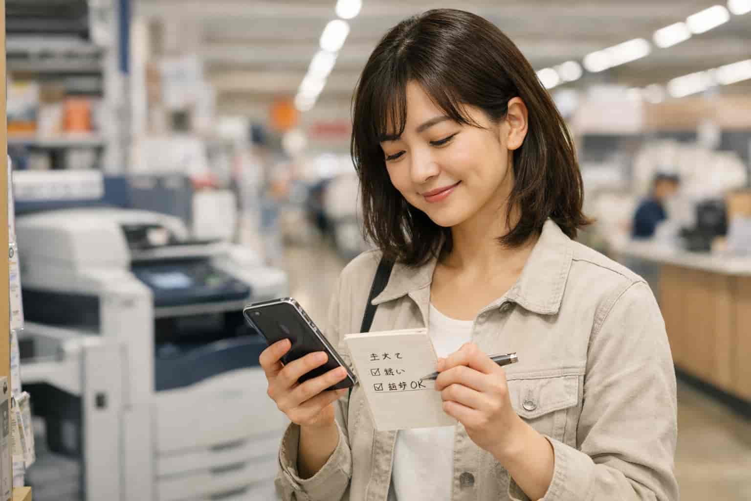 サイズが不安なら、用紙の縦横をメモしておくと店頭で話が早く進みます。